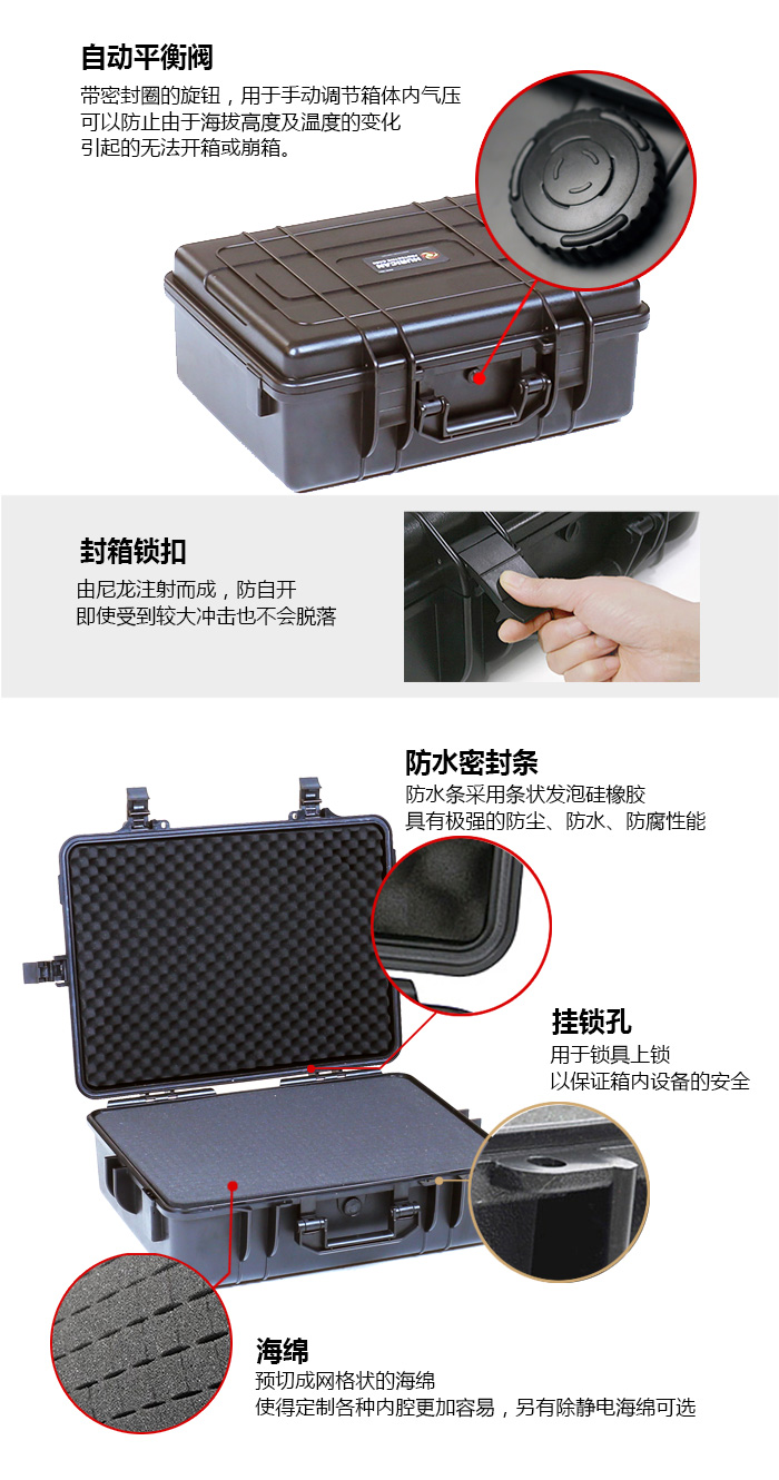 • 箱体由高抗冲ABS注射成型,坚固耐压,可根据要求定制具有耐低温的-40℃军用级防护箱