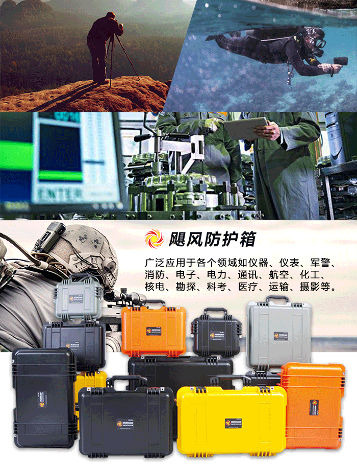 HR-3318是飓风中型安全防护箱中的一款。飓风防护箱是中国知名机箱制造商-长河机箱凭借23年的机箱制造经验,采用当今前沿的设计、材料和工艺,倾力打造的国内顶级防护箱品牌。HR-3318飓风防护箱,采用改性PP合金,抗摔抗震、防水防尘、耐极限温度、抗化学腐蚀,被广泛应用于军警、精密仪器、通信、电力、公安、勘探、摄影等行业领域。